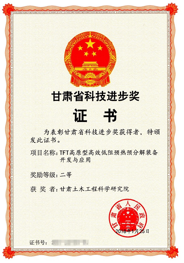 2018年1月17日,甘肅省政府印發(fā)《甘肅省人民政府關(guān)于2017年度甘肅省科學技術(shù)獎勵的決定》。我院聯(lián)合張掖市山丹鐵騎水泥有限責任公司申報的“TFT高原型高效低阻預(yù)熱預(yù)分解系統(tǒng)裝備與應(yīng)用”項目榮獲2017年度甘肅省科技進步二等獎。