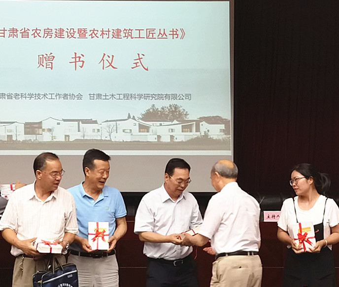 由我公司和甘肅省老科學(xué)技術(shù)工作者協(xié)會(huì)共同主編完成的《甘肅省農(nóng)房建設(shè)暨農(nóng)村建筑工匠叢書》(以下簡稱《叢書》)于2019年7月正式出版發(fā)行,并于7月30日在蘭州舉行了贈(zèng)書儀式。甘肅省科協(xié)、省市發(fā)改、資源、環(huán)保、住建、工信、科技、墻改等政府部門的代表,以及甘肅省土木建筑協(xié)會(huì)、省建材行業(yè)協(xié)會(huì)等相關(guān)協(xié)會(huì)的代表共120多人參加了本次儀式。甘肅省老科學(xué)技術(shù)工作者協(xié)會(huì)會(huì)長劉祖和和公司黨委書記、董事長、總經(jīng)理董紅健為大家進(jìn)行現(xiàn)場贈(zèng)書。