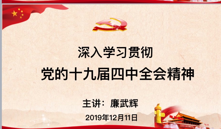 為貫徹落實公司黨委指示精神,12月11日下午,第一、三、四黨支部聯(lián)合開展“深入學(xué)習(xí)十九屆四中全會精神”的主題黨日活動,邀請西北民族大學(xué)馬克思主義學(xué)院副教授,碩士研究生導(dǎo)師,形勢與政策教研室主任廉武輝進行宣講。