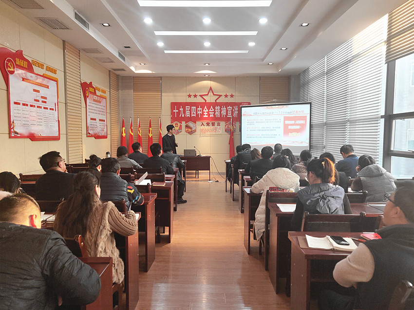 公司黨委書記董紅健及五十多位黨員、入黨積極分子、群眾參加了本次主題宣講。通過本次主題黨日活動,將進一步在支部廣大黨員群眾中掀起學(xué)習(xí)十九屆四中全會精神的熱潮。