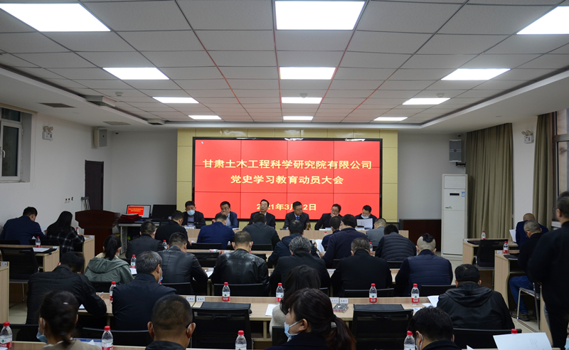 3月12日,公司黨委召開黨史學(xué)習(xí)教育動員大會,傳達學(xué)習(xí)習(xí)近平總書記在黨史學(xué)習(xí)教育動員大會上的重要講話精神、全省黨史學(xué)習(xí)教育動員大會精神以及省政府國資委、集團股份公司黨史學(xué)習(xí)教育動員大會會議精神。黨委書記、董事長董紅健主持會議并作動員講話,對公司黨史學(xué)習(xí)教育工作作了安排部署。黨委副書記、監(jiān)事會主席、工會主席張磊宣讀了《中共甘肅土木工程科學(xué)研究院有限公司委員會黨史學(xué)習(xí)教育實施方案》。公司黨委委員、紀(jì)委委員、各黨支部支部委員和黨員中層干部等參加會議。
