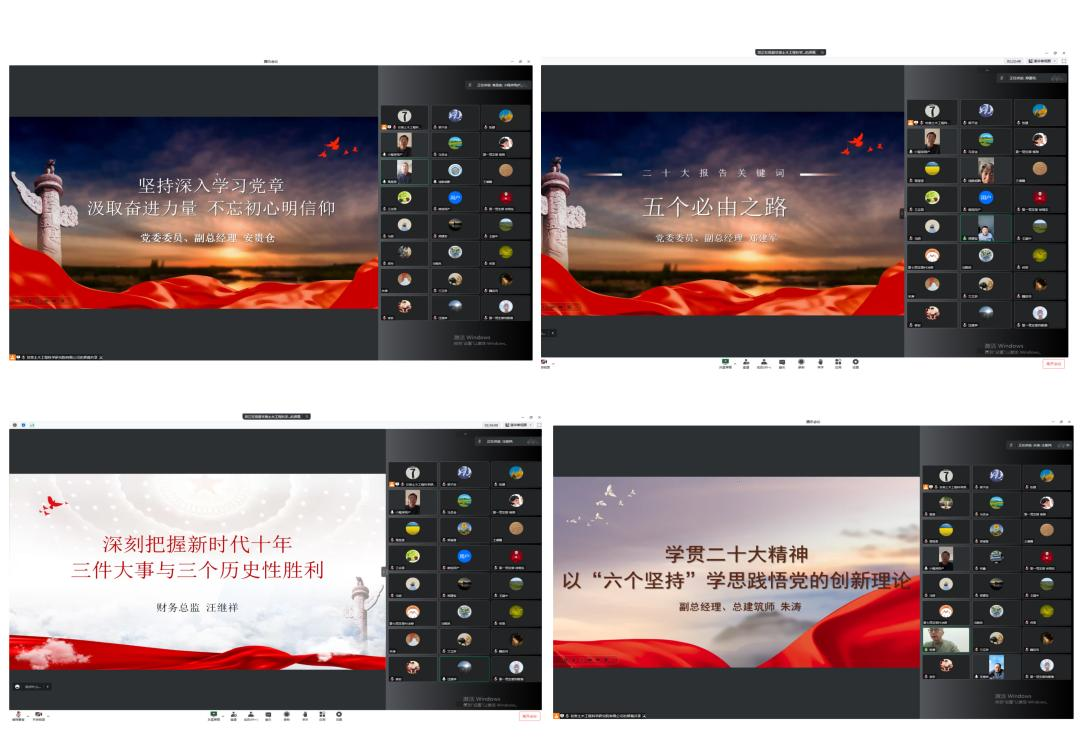 會議要求,各黨支部和各部門要堅持把深入學習宣傳貫徹黨的二十大精神作為當前和今后一個時期的首要政治任務,在全面學習、全面把握、全面落實上下功夫,聚焦主責主業(yè)和疫情防控,持續(xù)掀起“學宣貫”熱潮,推動學習宣傳貫徹黨的二十大精神走深走實。一要進一步提高政治站位,深刻認識學習宣傳貫徹黨的二十大精神的重要意義,原原本本學、聯(lián)系實際學、融會貫通學,真正學深悟透黨的二十大精神,切實做到政治站位更高、標準要求更嚴、行動更加自覺。二要自覺用黨的二十大精神統(tǒng)一思想和行動,牢固樹立底線思維、極限思維,以創(chuàng)新實干的使命感攻堅重點工作,以拼勁、干勁、巧勁扎實推進各項工作,全力以赴確保年底各項工作順利收官。三要統(tǒng)籌抓好防風險、保安全、護穩(wěn)定、戰(zhàn)疫情、促發(fā)展各項工作,以實際行動檢驗學習成效。