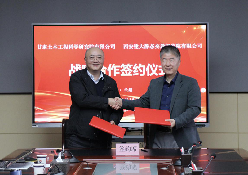 11月19日,甘肅工程咨詢集團股份有限公司副總經(jīng)理、甘肅土木工程科學研究院有限公司董事長曹慶與西安建大靜態(tài)交通研究院有限公司董事長史小輝在蘭州簽署了戰(zhàn)略合作協(xié)議。此次簽約,標志著兩家單位在建筑領域的安全監(jiān)測診斷、建筑能源管理運營平臺開發(fā)、數(shù)字孿生等方便開啟了全面深入合作模式。