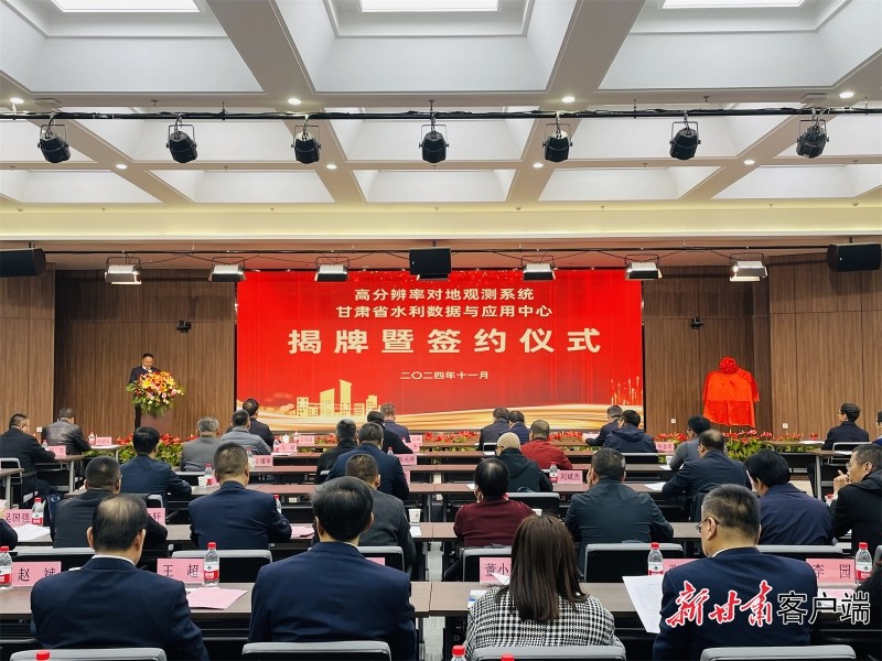 高分辨率對(duì)地觀測系統(tǒng)甘肅水利數(shù)據(jù)與應(yīng)用中心揭牌暨簽約儀式現(xiàn)場。新甘肅·甘肅日?qǐng)?bào)記者 張燕茹 攝
