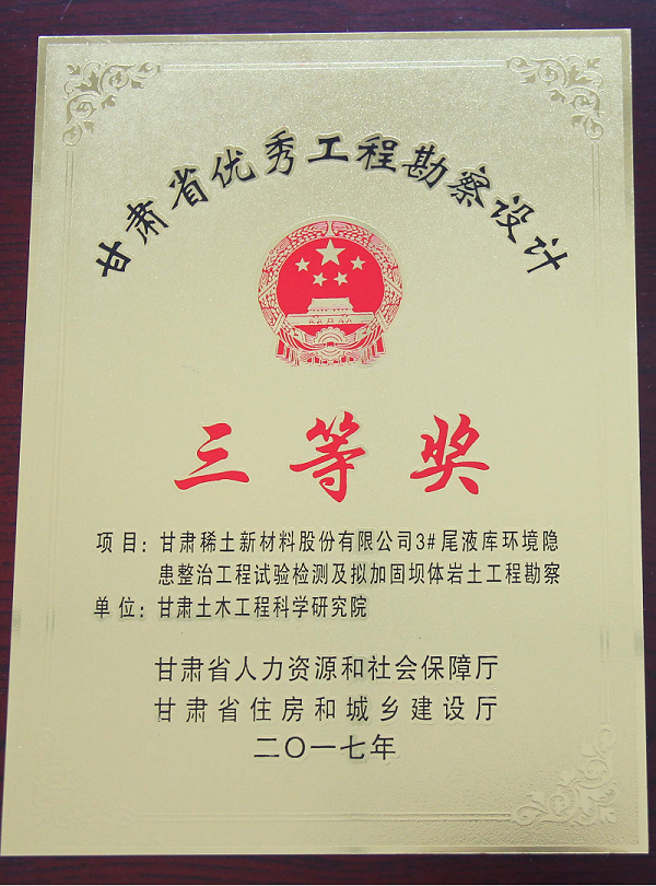 2.獲2017年度甘肅省優(yōu)秀工程勘察設計三等獎。