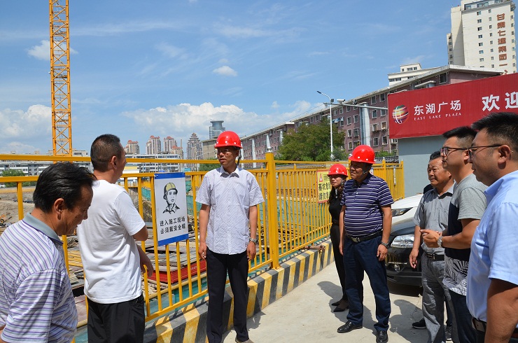 在東湖廣場、盛達金城廣場兩項目現(xiàn)場,章海峰同志一行詳細詢問了工程建設情況和夏季高溫作業(yè)職工的勞動保護措施落實情況,充分的肯定了各施工現(xiàn)場對防暑降溫工作采取的一系列保障措施,并要求各施工現(xiàn)場科學、合理安排好作息時間,進一步落實安全生產責任制,消除各類安全隱患,保證職工身心健康和施工安全。他向一線工作人員們送上了茶葉、飲料等防暑用品,并對我院廣大一線職工戰(zhàn)高溫、斗酷暑,一如既往地堅守在工作崗位上的辛勤工作表示感謝,親切叮囑他們注意安全,保重身體。